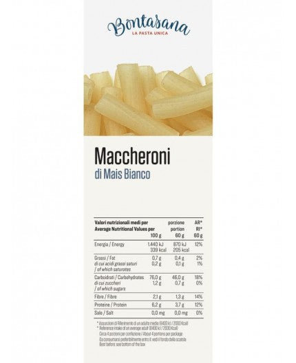 MACCHERONI N. 25 · MAIS BIANCO BIO - SENZA GLUTINE 250 GR